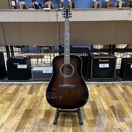 Модель выполнена в корпусе Dreadnought и отличается сбалансированным и объемным звучанием с мощными басами, выпуклыми средними частотами и сильными, чистыми верхними нотами.