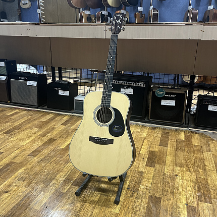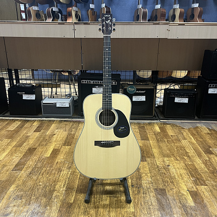 Акустическая гитара с верхней декой из массива ситхинской ели. Обечайки и задняя дека выполнены из сапеле. Трёхслойная окантовка верхней деки и благородный классический цвет корпуса придают инструменту особенное изящество. Гриф из массива нато тщательно отполирован. Накладка из искусственного композита Richlight максимально устройчива к изменениям влажности.
