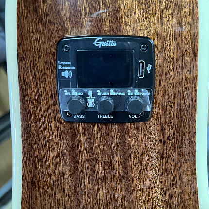 Динамик, прикрепленный к деке инструмента, создает эффекты реверберации, дилея и хоруса без подключения к усилителю.