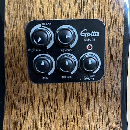 Динамик, прикрепленный к деке инструмента, создает эффекты реверберации, дилея и хоруса без подключения к усилителю.