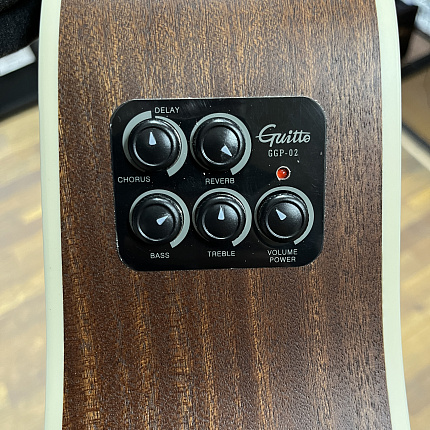 Динамик, прикрепленный к деке инструмента, создает эффекты реверберации, дилея и хоруса без подключения к усилителю.