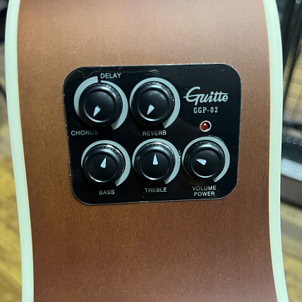 Динамик, прикрепленный к деке инструмента, создает эффекты реверберации, дилея и хоруса без подключения к усилителю.